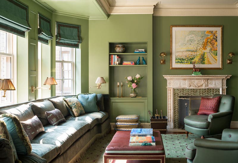 Housed inside a 1910 Arts and Crafts-style apartment building by architect William Wilhelm Wilkerson, the Upper West Side Residence program called for combining three apartments on the eleventh floor to create one unit suitable for a six-member family. As the client wanted comfortable spaces for everyday living that incorporated the building’s architectural style, all three apartments required a comprehensive renovation. Although a few original details—because they are in keeping with the Arts and Crafts style—survived, including an original inglenook fireplace and clay tile floor in the living room, and original French doors and paneling in the octagonal dining room.