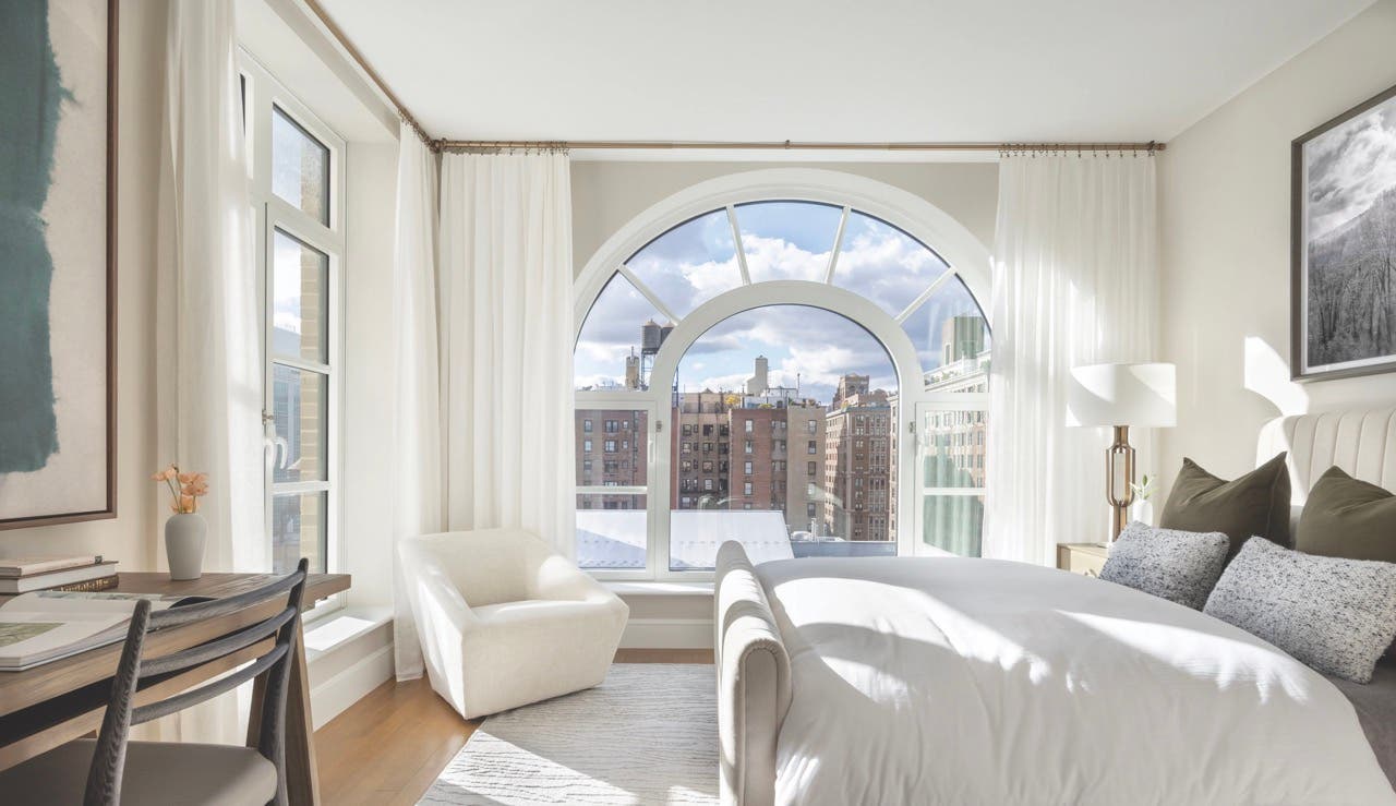 Up to level 10, a rigorously symmetrical composition of windows and French Juliet balconies further echoes the rhythm of the streetscape. The balconies, which feature custom-made glass-and-metal railings and in-swinging paired casement doors or windows, provide sunlight and fresh air.